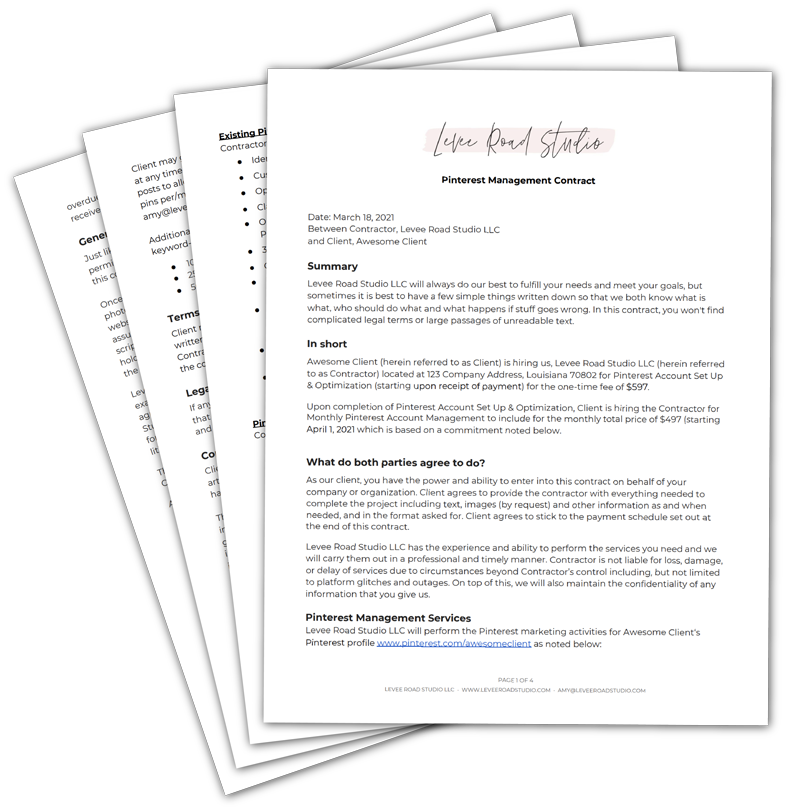 Protect yourself and your client with this easy, fill-in-the-blank Pinterest Management Contract Template