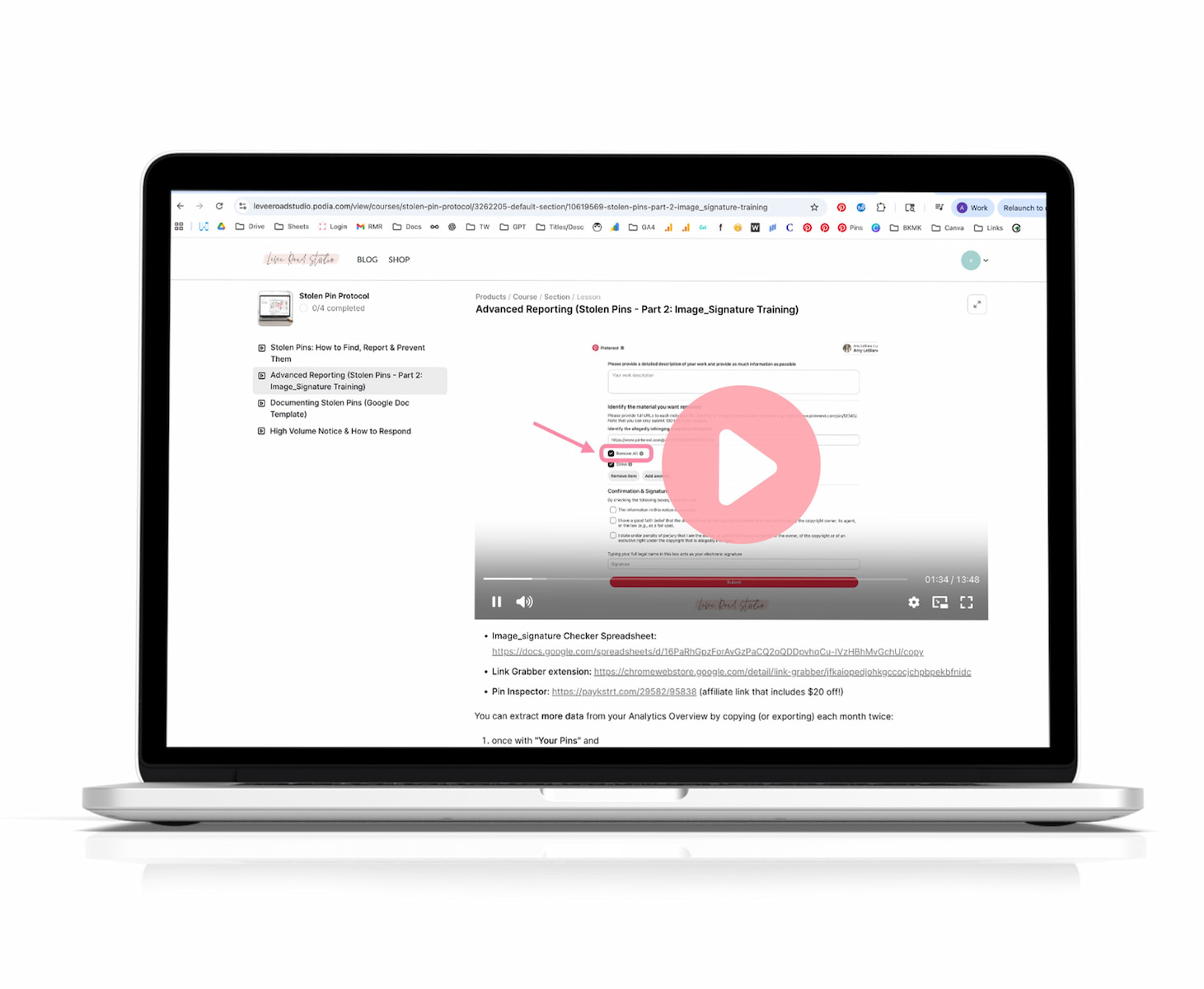 This module shows you a simple tracking system so you can record every stolen pin, track reporting status, and maintain documentation if needed later. Swipe the exact Google Doc template I use to track stolen pins for client accounts and my own blog accounts!